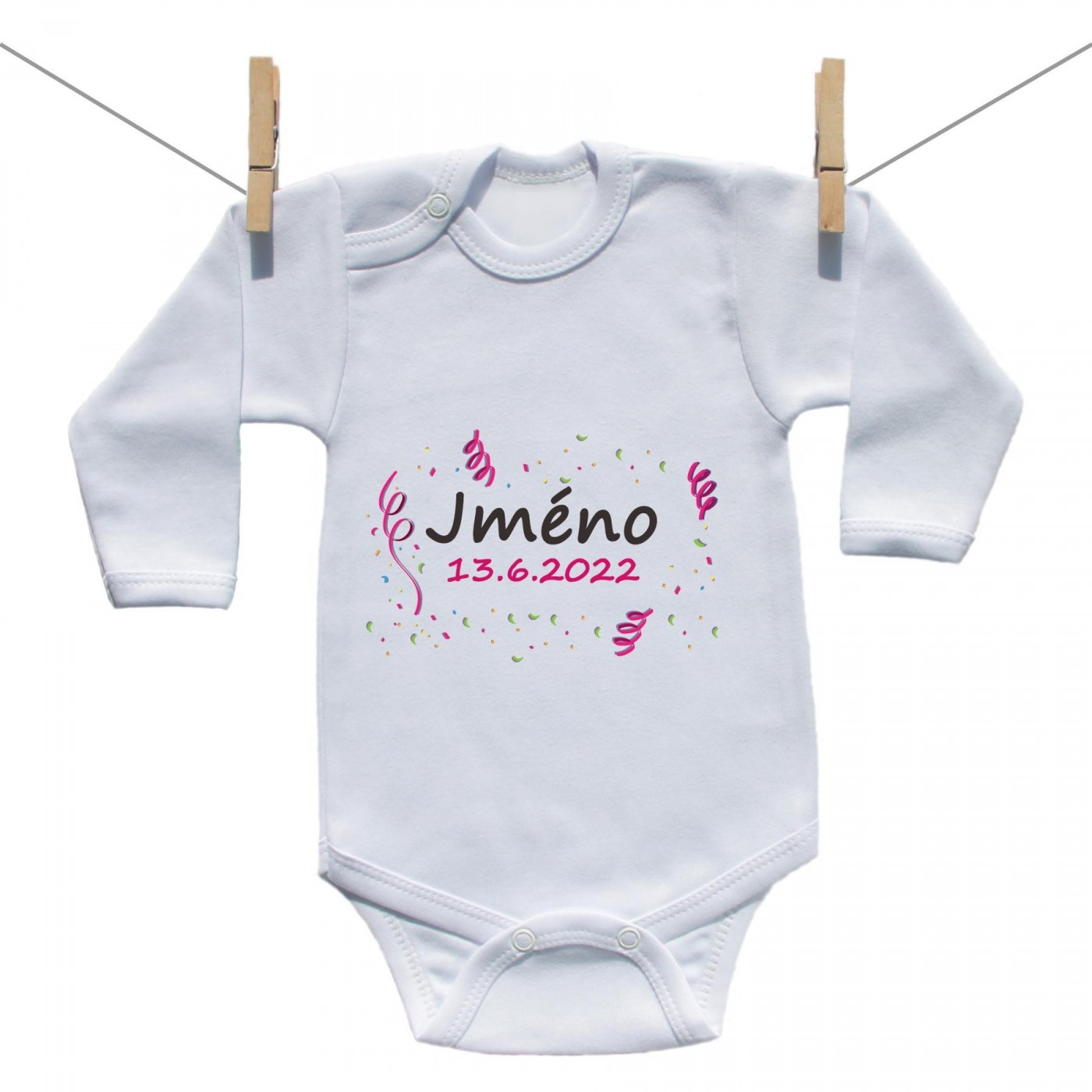 Body s dlouhým rukávem Se jménem děťátka a datem (Dívka)