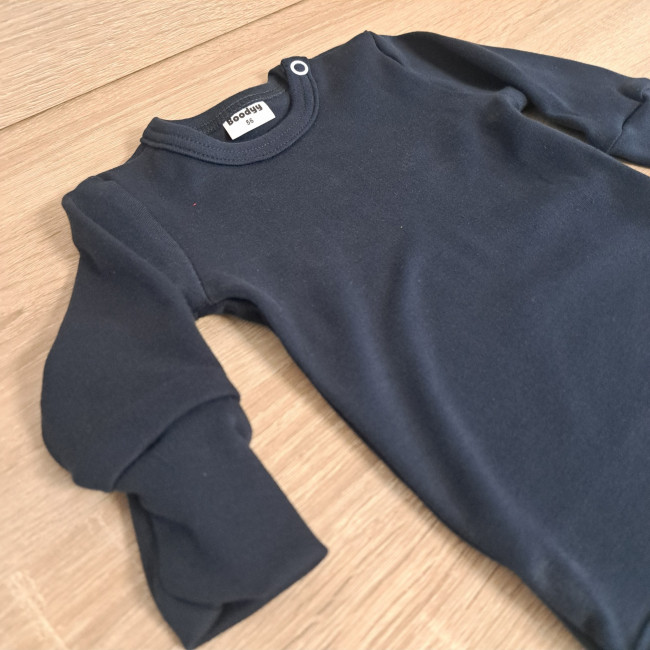 Na kvalitě si dáváme záležet. Body bylo ručně ušito v naší dílně z kvalitní 100% bavlny. Látka je příjemně měkká, prodyšná a ideální pro citlivou dětskou pokožku. Tmavě modrá barva je nejen stylová, ale i praktická na údržbu a snadno se kombinuje s jinými kousky.