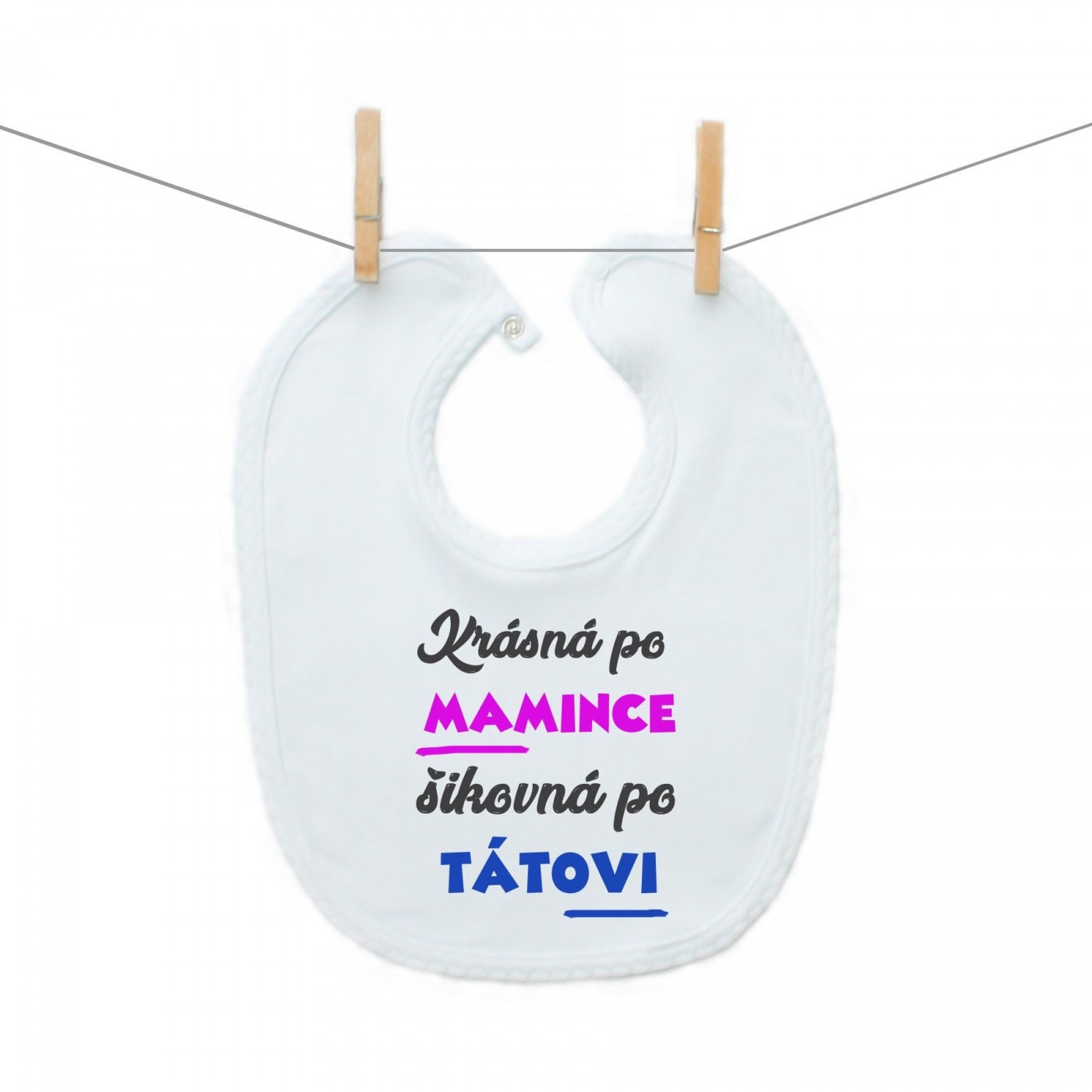 Krásny bryndáček na zapínání s originálním nápisem, ve kterém Váš malý poklad zazáří. Najdete pouze u nás.