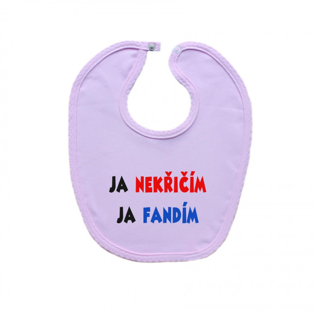 Růžový bryndáček na zapínání Ja nekřičím ja fandím