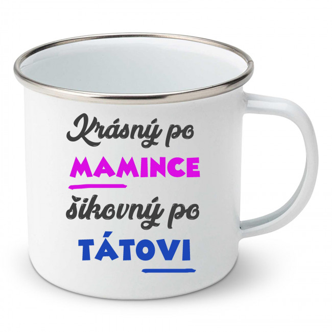Smaltovaný hrnek Krásný po mamince šikovný po tátovi