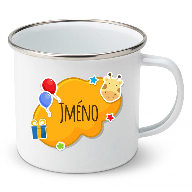 Smaltovaný hrnek Oranžová bublina se jménem dítěte