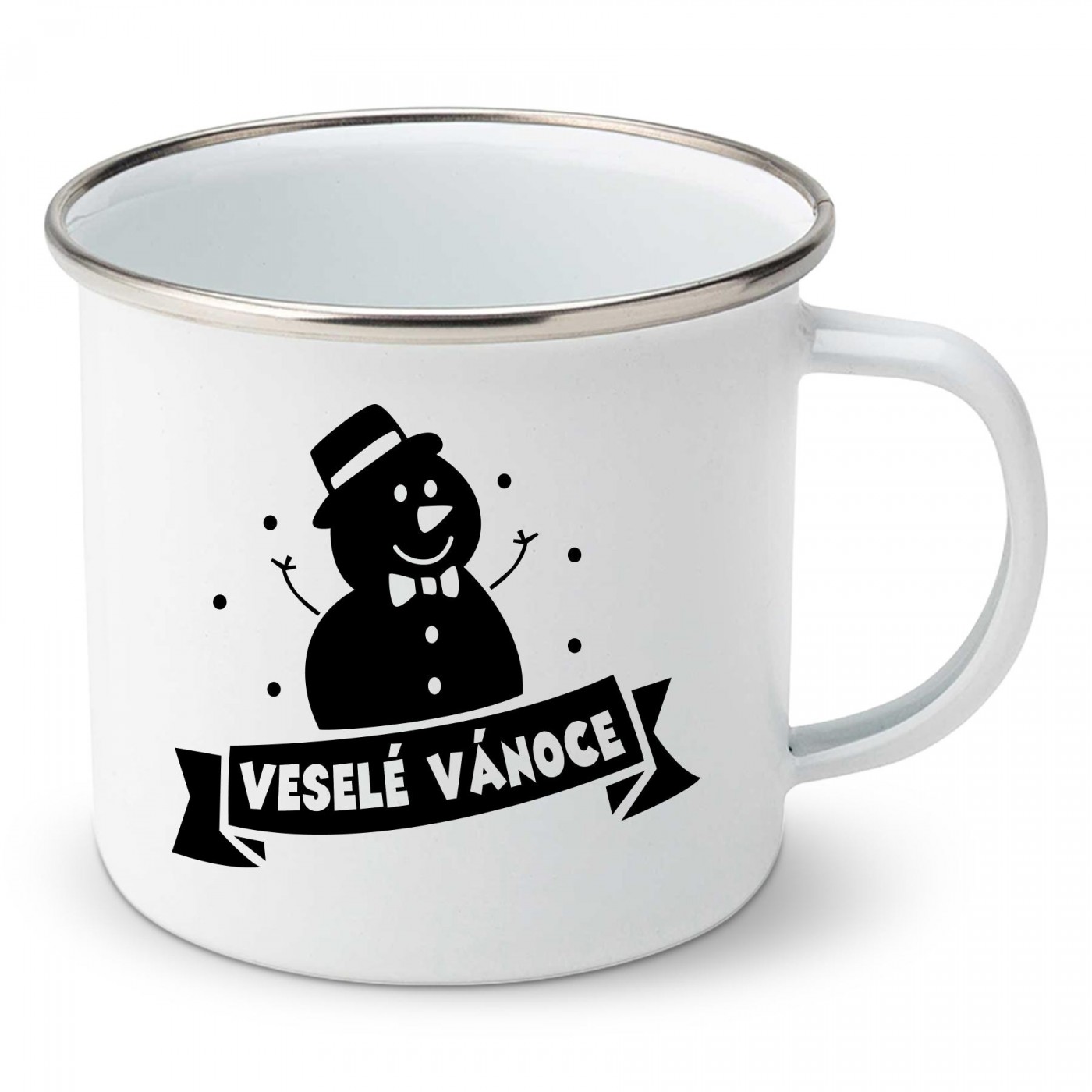 Smaltovaný hrnek Sněhulák Veselé Vánoce