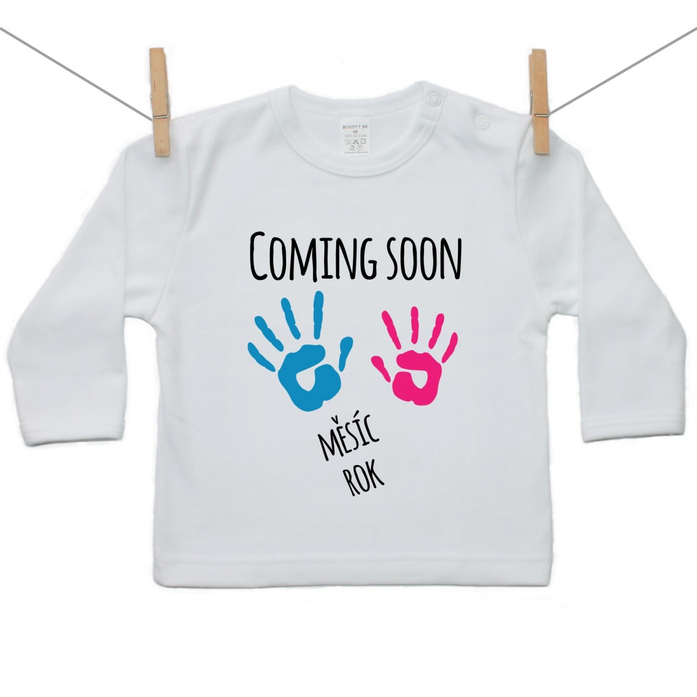 Tričko s dlouhým rukávem má při velikostech 68 - 92 zapínání na druky u krku pro co nejpohodlnější oblékání.Vyrobeno z kvalitní 100% bavlny.