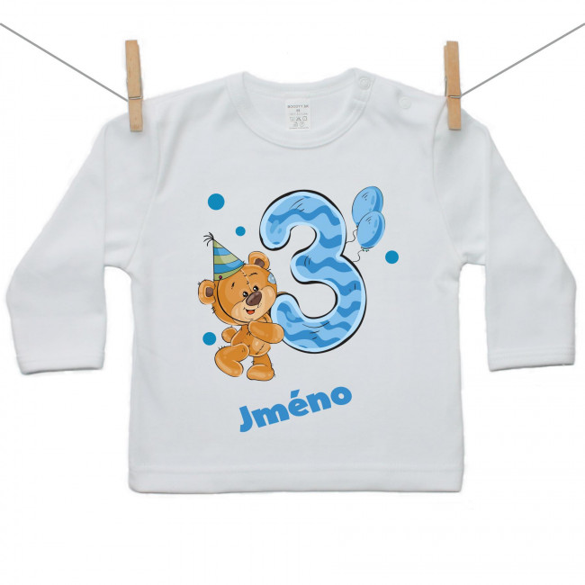 Tričko s dlouhým rukávem Mám 3 roky s medvídkem pro chlapečka