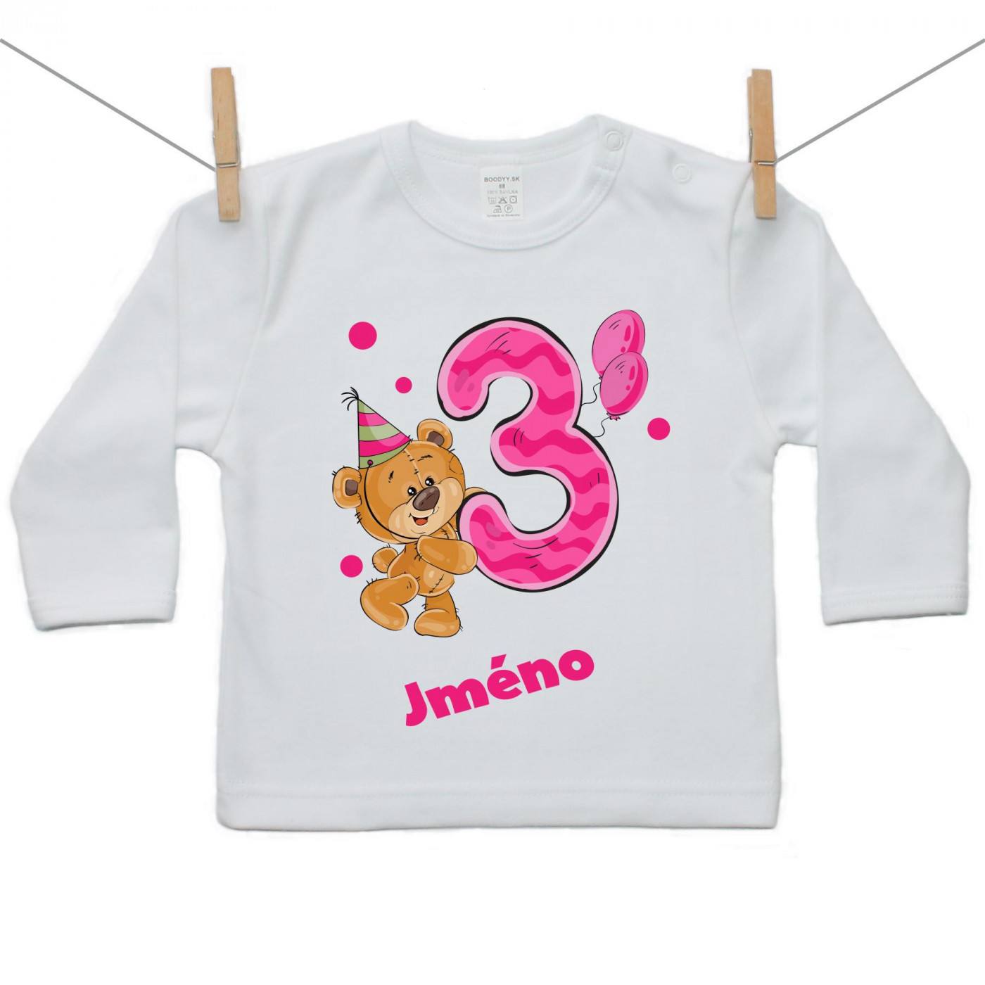 Tričko s dlouhým rukávem Mám 3 roky s medvídkem pro holčičku