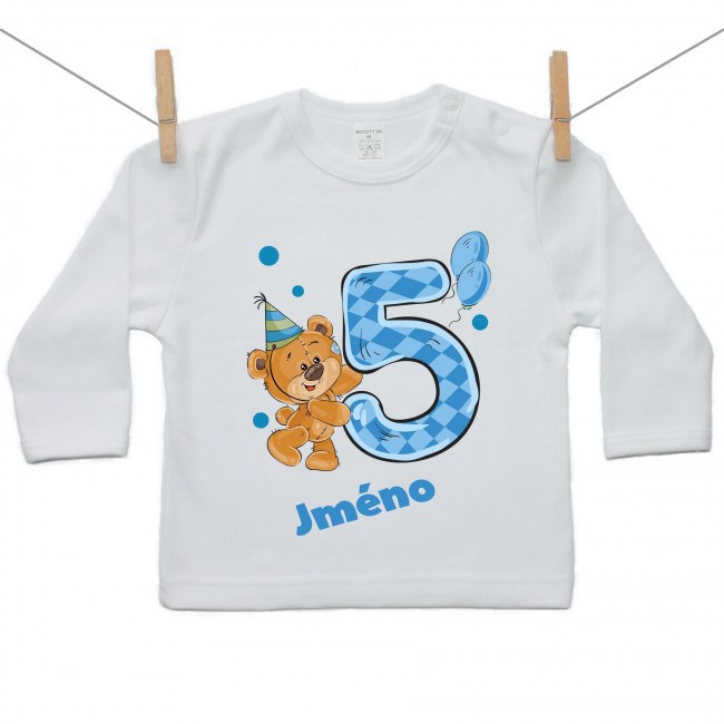 Tričko s dlouhým rukávem Mám 5 let s medvídkem pro chlapečka
