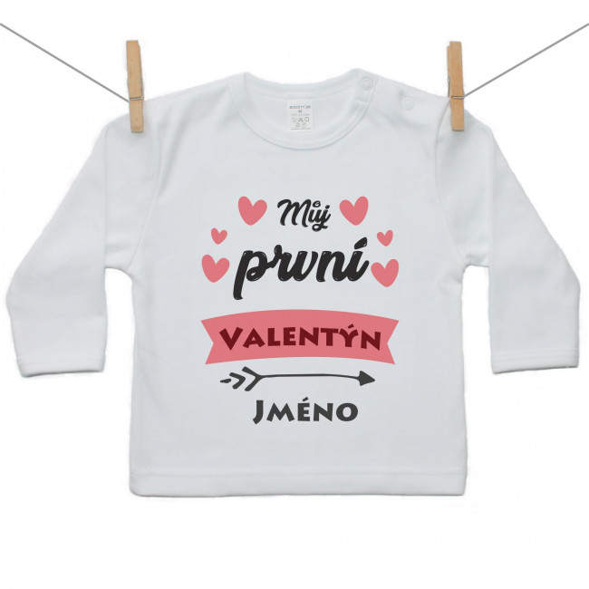 Tričko s dlouhým rukávem Můj první Valentýn se srdíčkem
