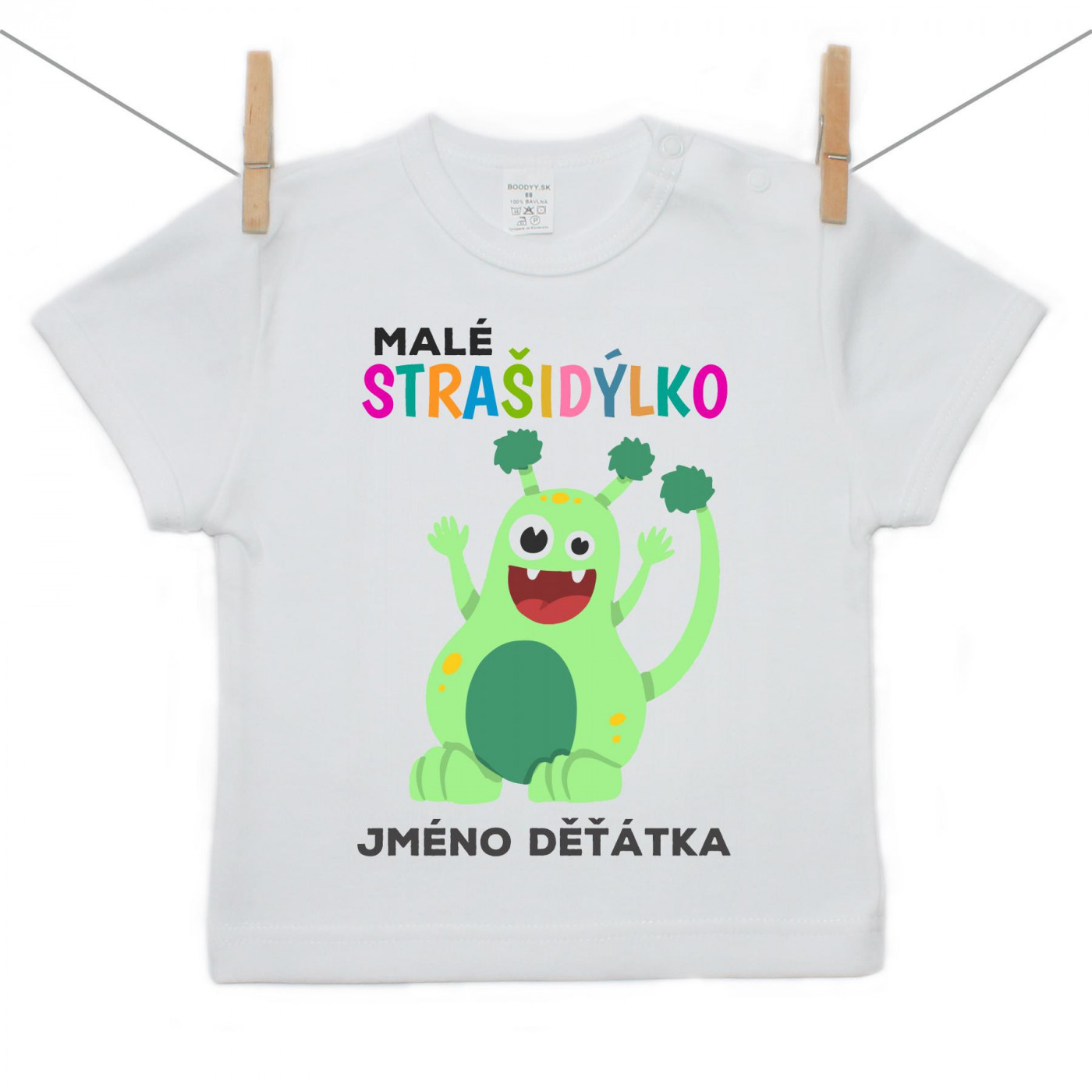 Tričko s krátkým rukávem Malé strašidýlko - zelené se jménem děťátka