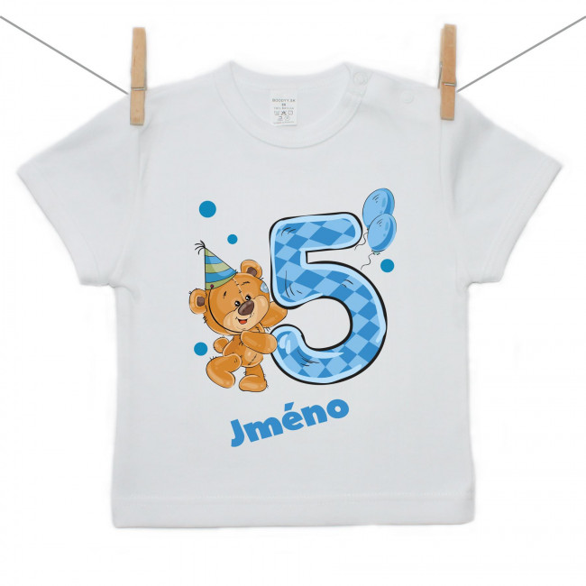 Tričko s krátkým rukávem Mám 5 let s medvídkem pro chlapečka