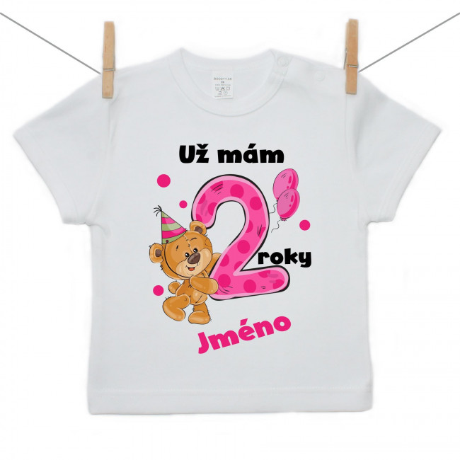 Tričko s krátkým rukávem Už mám 2 roky s Medvídkem a jménem dítěte Dívka