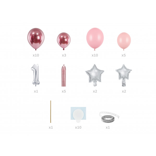 Vše, co potřebujete k vytvoření této nádhery, naleznete v jednom balení. K nafouknutí balónků Vám doporučujeme použít helium pro létající efekt nebo praktickou ruční pumpu. Tento set je kompletním řešením pro Vaši slavnostní dekoraci.