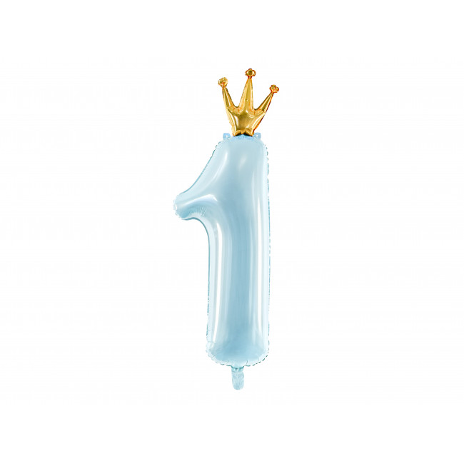Fóliový balónek číslo 1, 37x100cm, nebesky modrý s korunkou