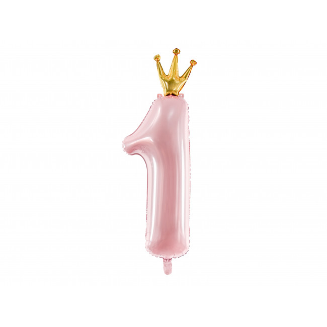 Fóliový balónek Číslo 1, 37x100cm, světle růžový s korunkou