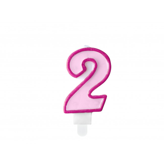 Narozeninová svíčka Číslo 2, růžová, 7cm