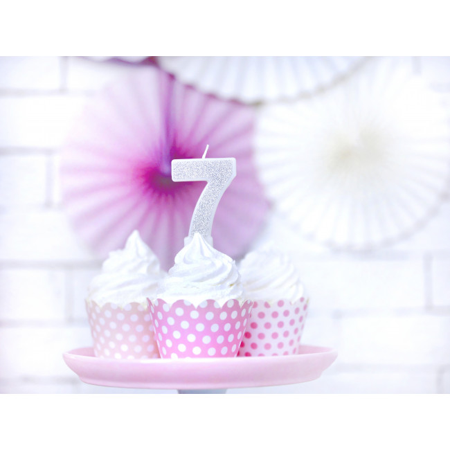 Narozeninová svíčka Číslo 7, stříbrná, 7cm