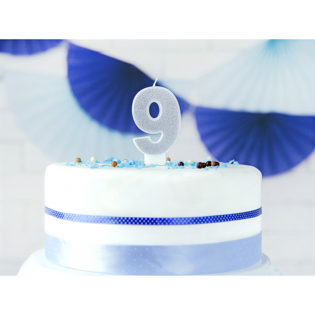 Každý narozeninový dort si zaslouží být korunován stylovou svíčkou, která podtrhne výjimečnost okamžiku. Naše svíčka ve tvaru čísla devět v nádherné stříbrné barvě se třpytkami přinese na Vaši oslavu ten správný punc elegance a slavnostní atmosféry. Její jiskřivý design zaručeně upoutá pozornost a potěší každého oslavence.