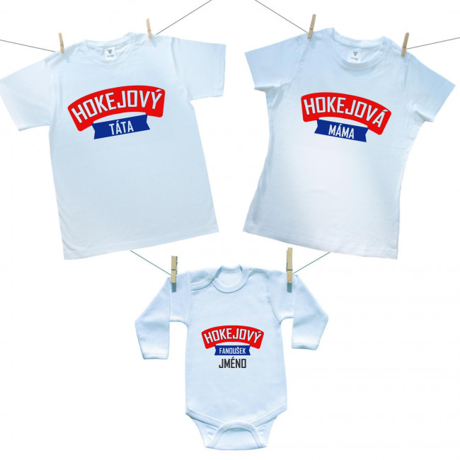 Rodinná sada (body s dlouhým rukávem) Hokejová rodina se jménem fanouška