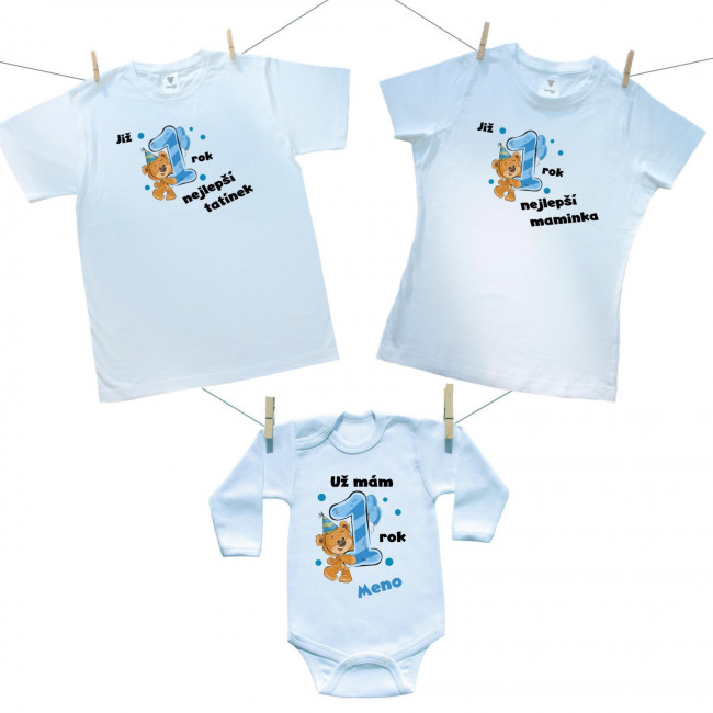 Rodinná sada (body s dlouhým rukávem) Již 1 rok nejlepší rodiče chlapečka s jménem děťátka