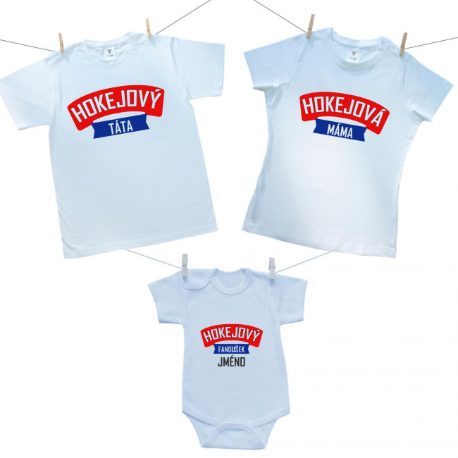 Rodinná sada (body s krátkým rukávem) Hokejová rodina se jménem fanouška