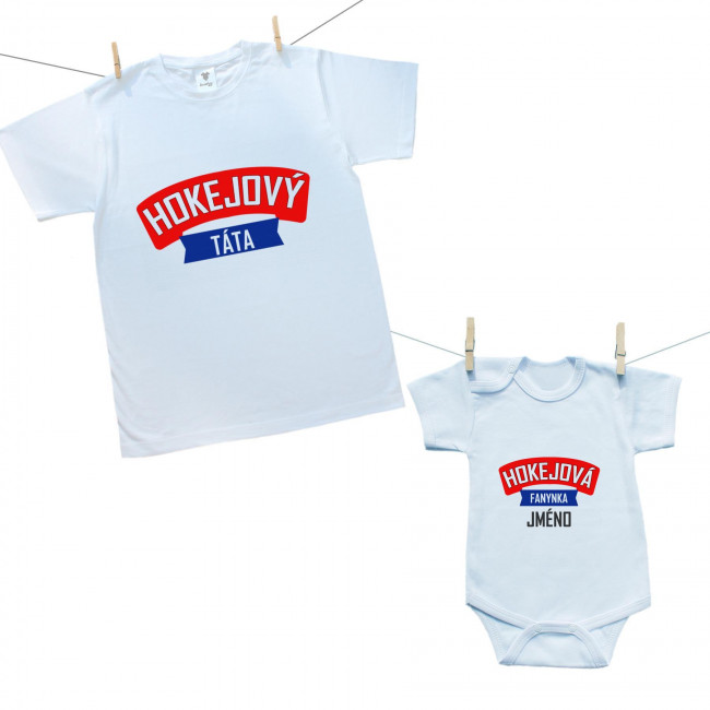 Rodinná sada (body s krátkým rukávem) Hokejový táta a malá fanynka