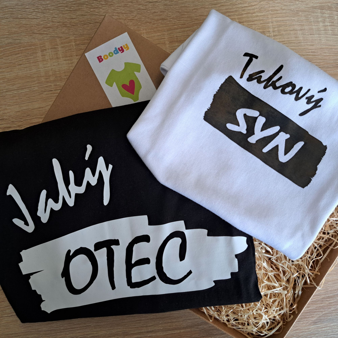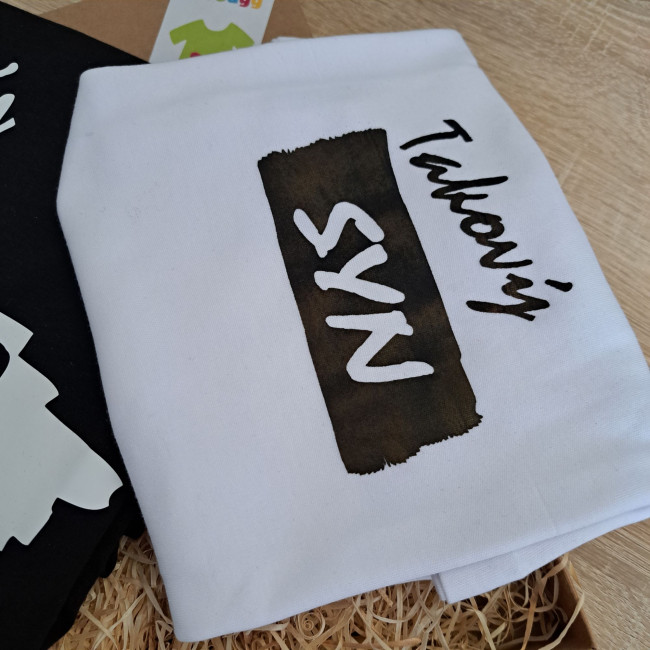 Pak jste na správném místě! Tato rodinná sada s motivem "Jaký otec, takový syn" je perfektním dárkem pro každou příležitost. Tričko a body jsou vyrobená z kvalitní 100% bavlny, která je příjemná na dotek a pohodlně se nosí. Černé tričko pro otce má nápis "Jaký otec" a bílé body s krátkým rukávem pro syna má nápis "Takový syn".