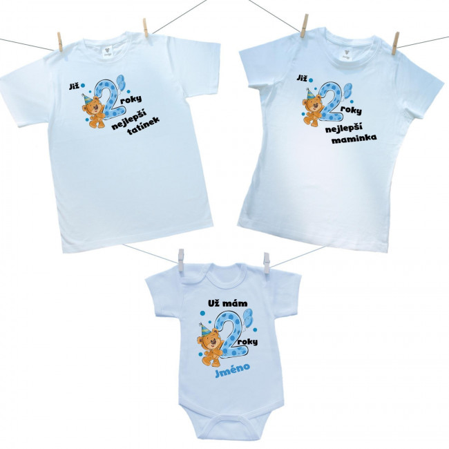 Rodinná sada (body s krátkým rukávem) Již 2 roky nejlepší rodiče chlapečka s jménem děťátka