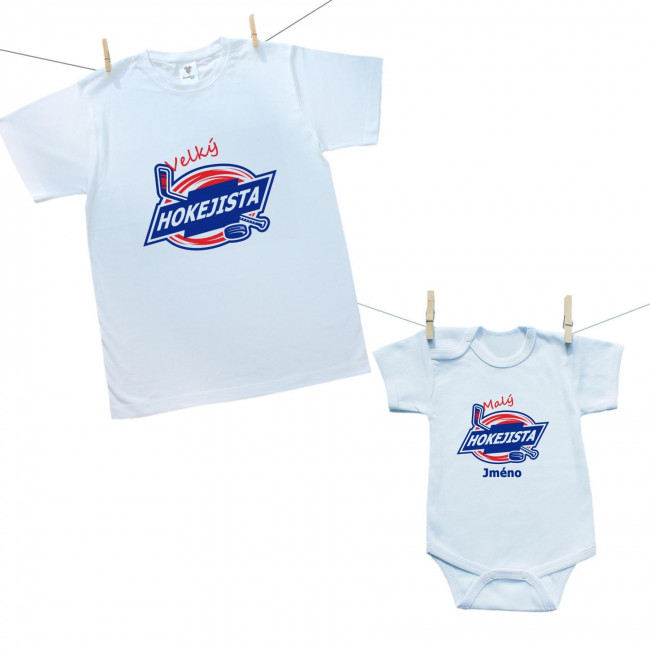 Rodinná sada (body s krátkým rukávem) Malý a velký hokejista s jménem