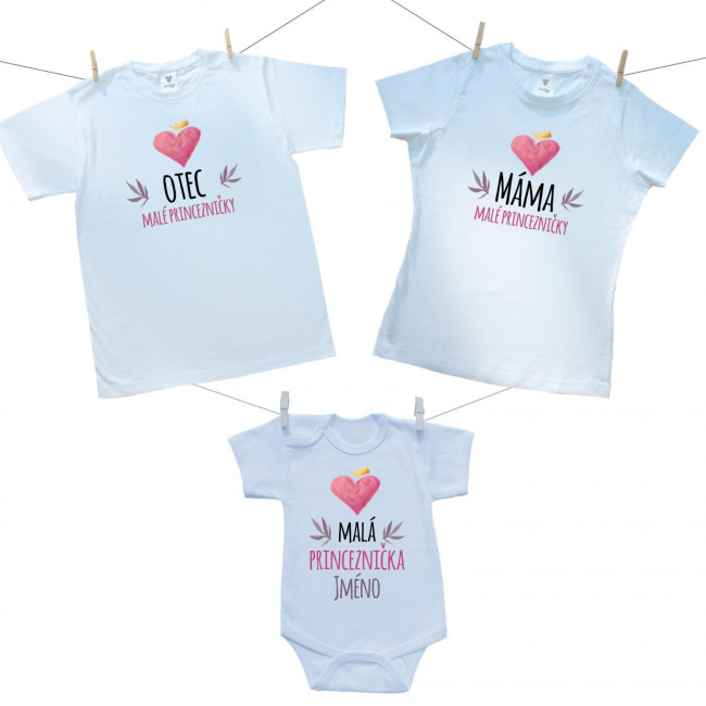 Rodinná sada (body s krátkým rukávem) Otec, máma a malá princeznička se jménem