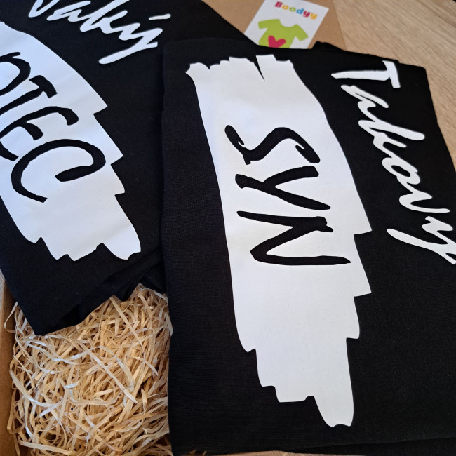 Pak jste na správném místě! Tato rodinná sada triček s motivem "Jaký otec, takový syn" je perfektním dárkem pro každou příležitost. Trička jsou vyrobená z kvalitní 100% bavlny, která je příjemná na dotek a pohodlně se nosí. Černé tričko pro otce má nápis "Jaký otec" a černé tričko s krátkým rukávem pro syna má nápis "Takový syn".