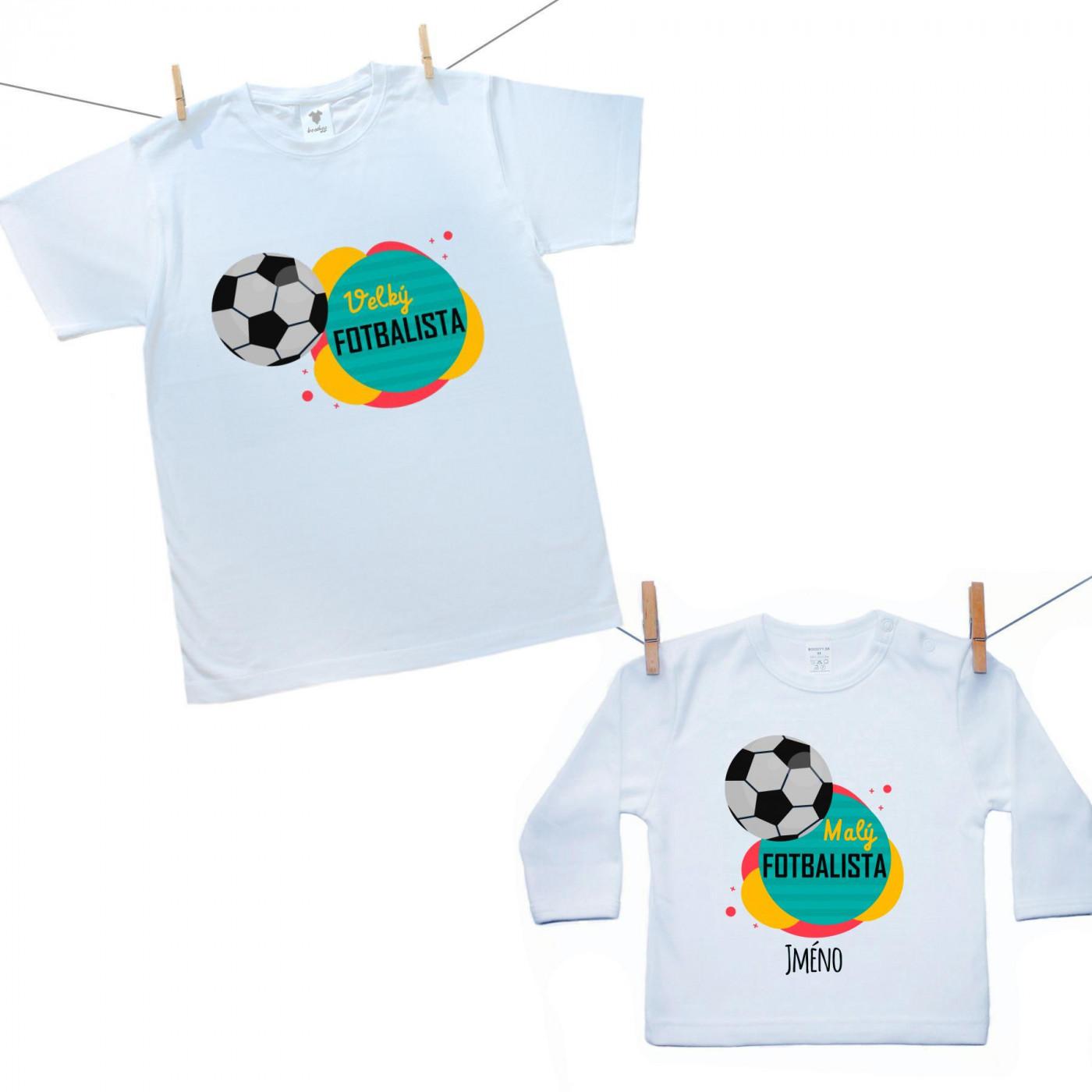 Rodinná sada (tričko s dlouhým rukávem) Malý a velký fotbalista se jménem děťátka