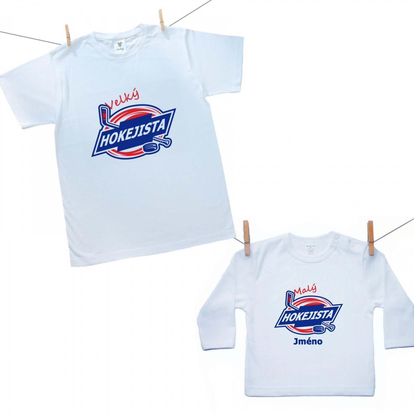 Rodinná sada (tričko s dlouhým rukávem) Malý a velký hokejista s jménem