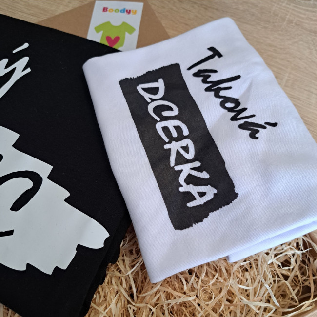 Chtěli byste tuto rodinnou sadu rozšířit pro dalšího syna nebo dceru? Žádný problém! V naší nabídce naleznete také další samostatná trička s nápisem "Takový syn" pro dalšího chlapce, nebo "Taková dcerka" pro holčičku, abyste si mohli poskládat sadu přesně podle vašich potřeb.