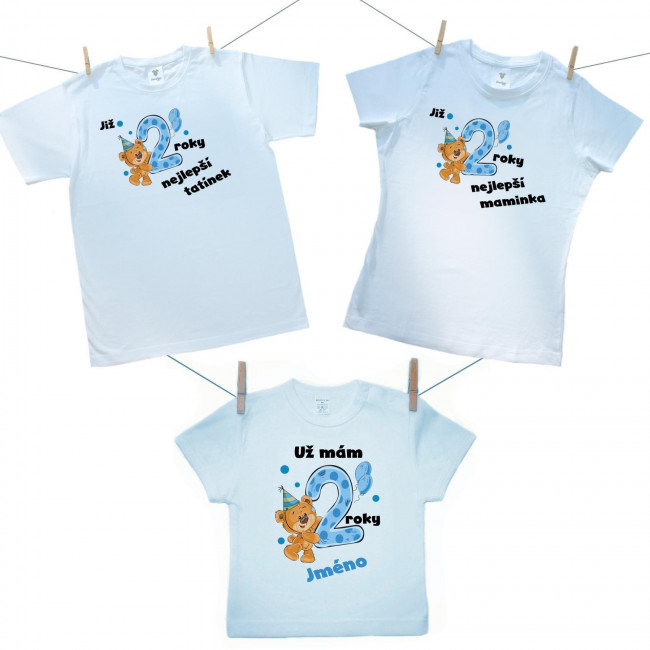 Rodinná sada (tričko s krátkým rukávem) Již 2 roky nejlepší rodiče chlapečka s jménem děťátka