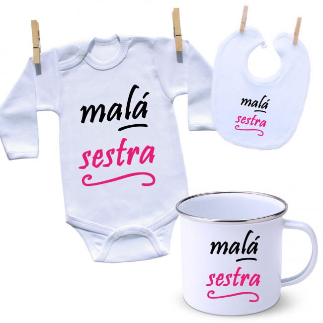 Krásná sada oblečení a bílého smaltovaného hrnku s originálním nápisem.