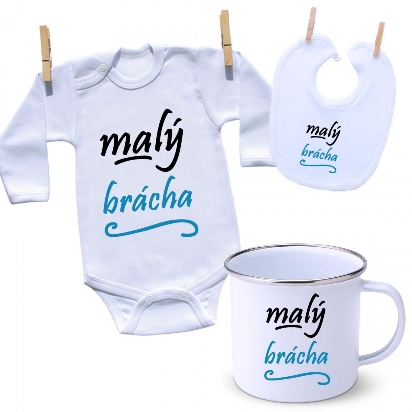 Krásná sada oblečení a bílého smaltovaného hrnku s originálním nápisem.