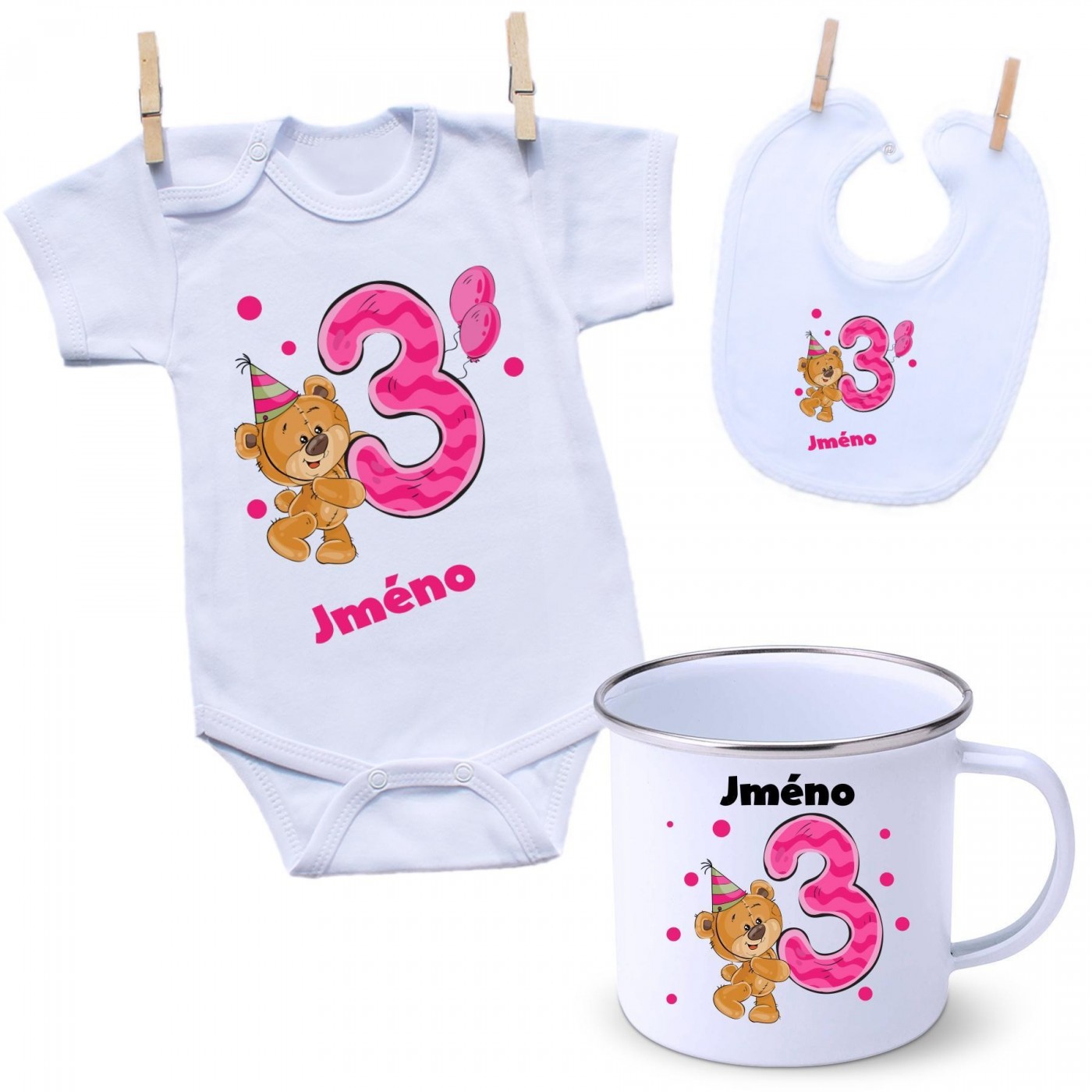 Sada Sada 3 roky s Medvídkem a jménem dítěte Dívka