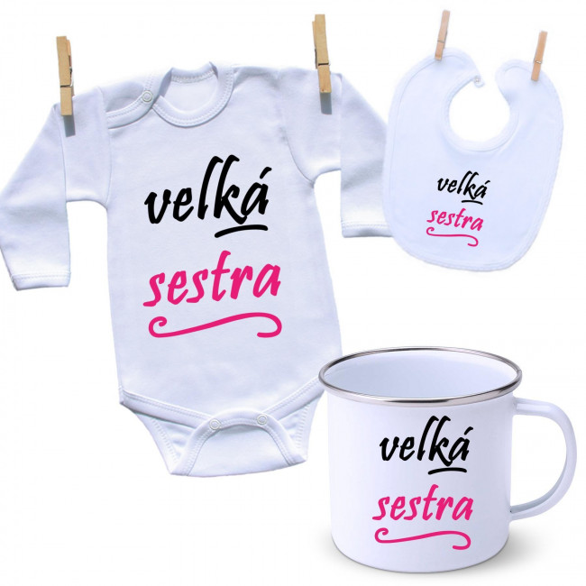Krásná sada oblečení a bílého smaltovaného hrnku s originálním nápisem.