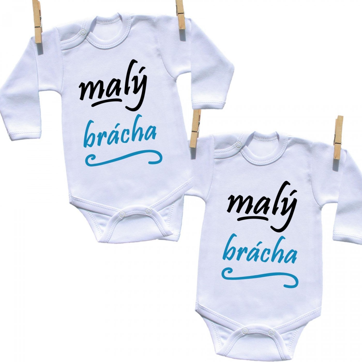 Krásná sada oblečení pro sourozence s originálním nápisem.